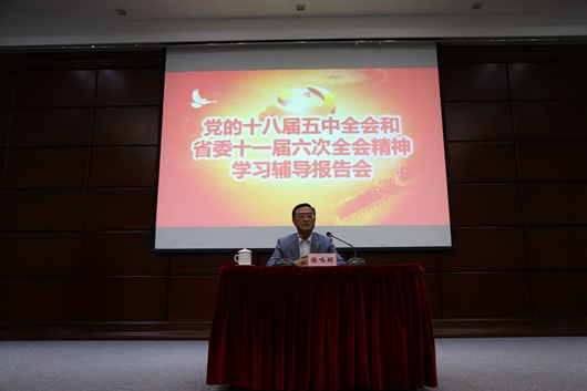 陈鸣明副省长到万象城官网作十八届五中全会和省委十一届六次全会精神学习辅导报告